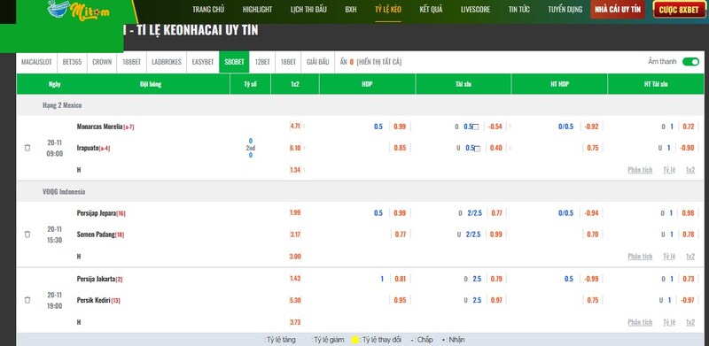 Cập nhật kèo cực nhanh, gần như thời gian thực