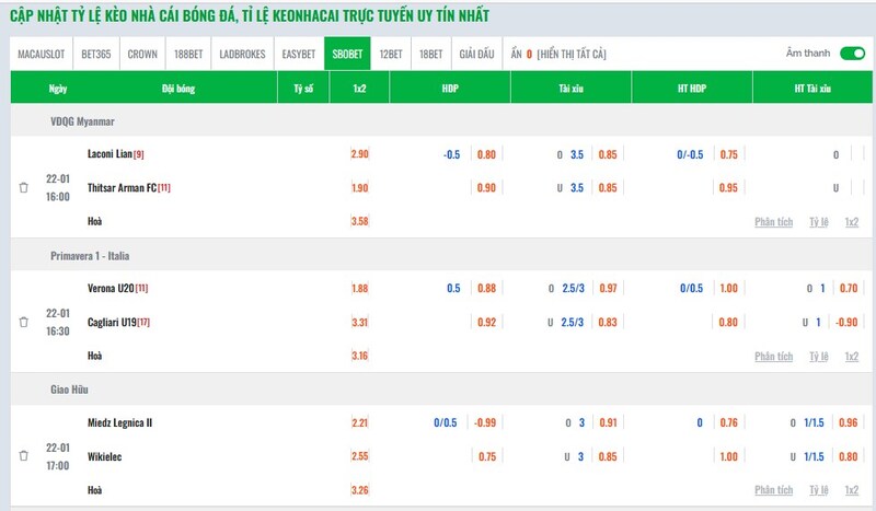 Soi keo hom nay được cập nhật đều đặn, đúng thời điểm