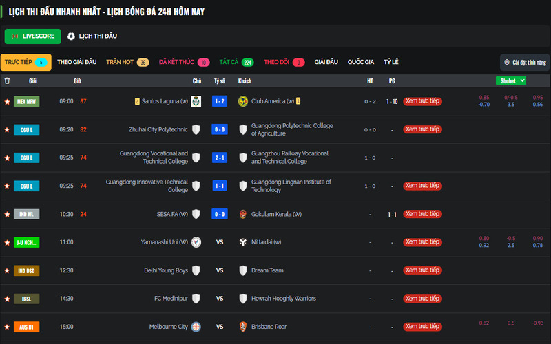 - Bước 3: Dựa theo ngày thi đấu hoặc tên giải đấu để tìm kiếm trận bóng bạn quan tâm. Các trận đấu được sắp xếp khoa học, dễ nhìn, giúp bạn tìm thông tin nhanh chóng.