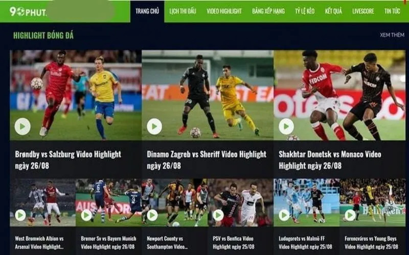 Xem highlight bóng đá chất lượng cao tại trang web 90m TV